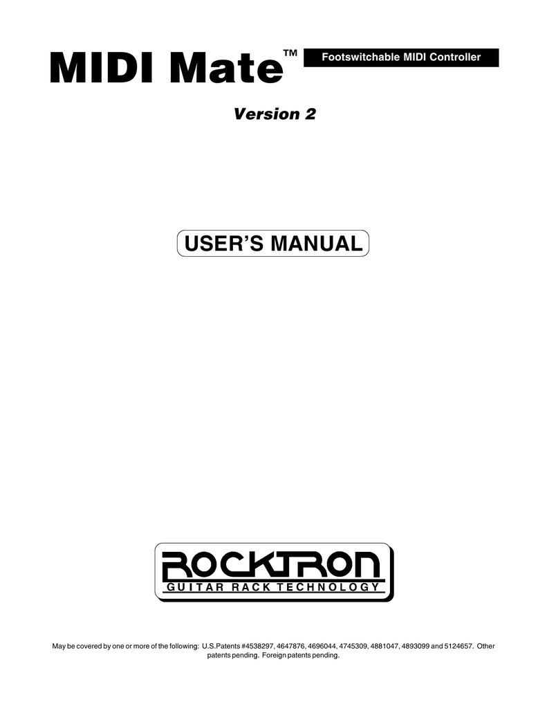 Gustavo fogel on rocktron_midi_mate_manual_ krisjemmi. Published on 04/12/12 at 14:45. May be covered by one or more of the following: